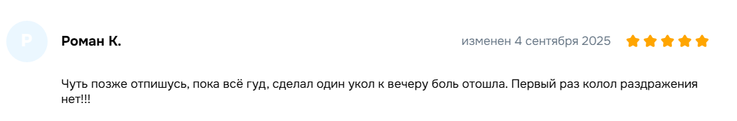 Отзывы принимавших препарат TB-500 в основном положительные. Спортсмены пишут, что препарат помогает быстрее восстанавливаться после нагрузок и травм, уменьшает воспаление в суставах и связках. Тренировки переносятся легче, а восстановление после них — короче. Есть комментарии о том, что улучшается гибкость и подвижность суставов даже, если травмы старые.
